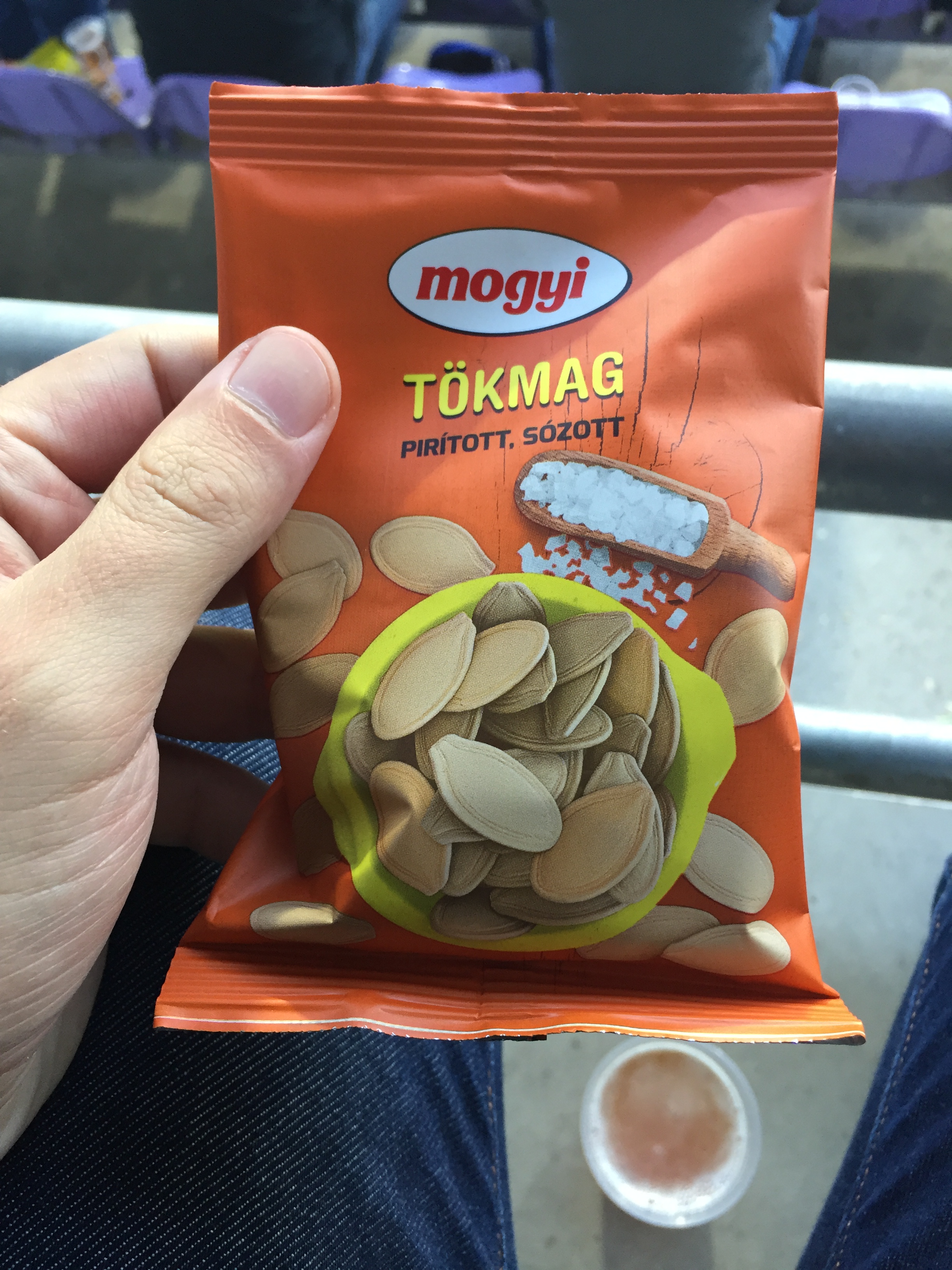 I decide to get into the spirit of things with the traditional pumpkin seeds. The scene in the picture below is a ubiquitous one at Hungarian football games and the constant cracking of seeds was described by Benny as “like being surrounded by squirrels”. It’s no meat pie and Bovril but provides a satisfying underfoot crunch.