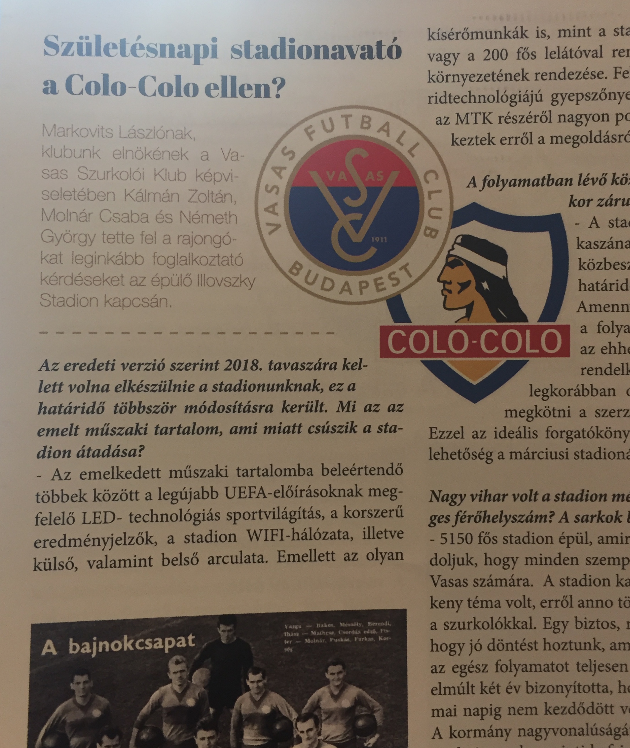 After a quiet period, there’s some info on the new Vasas stadium in the first programme of the season. It seems that the first game in the newly-build ground will be in March, and hopefully against Colo Colo, a Chilean club whom Vasas played in the 60s as part of an invitational tournament. Seeing a little South American flair under the lights at Angyalföld would be a nice way to kick off at the club’s new home.