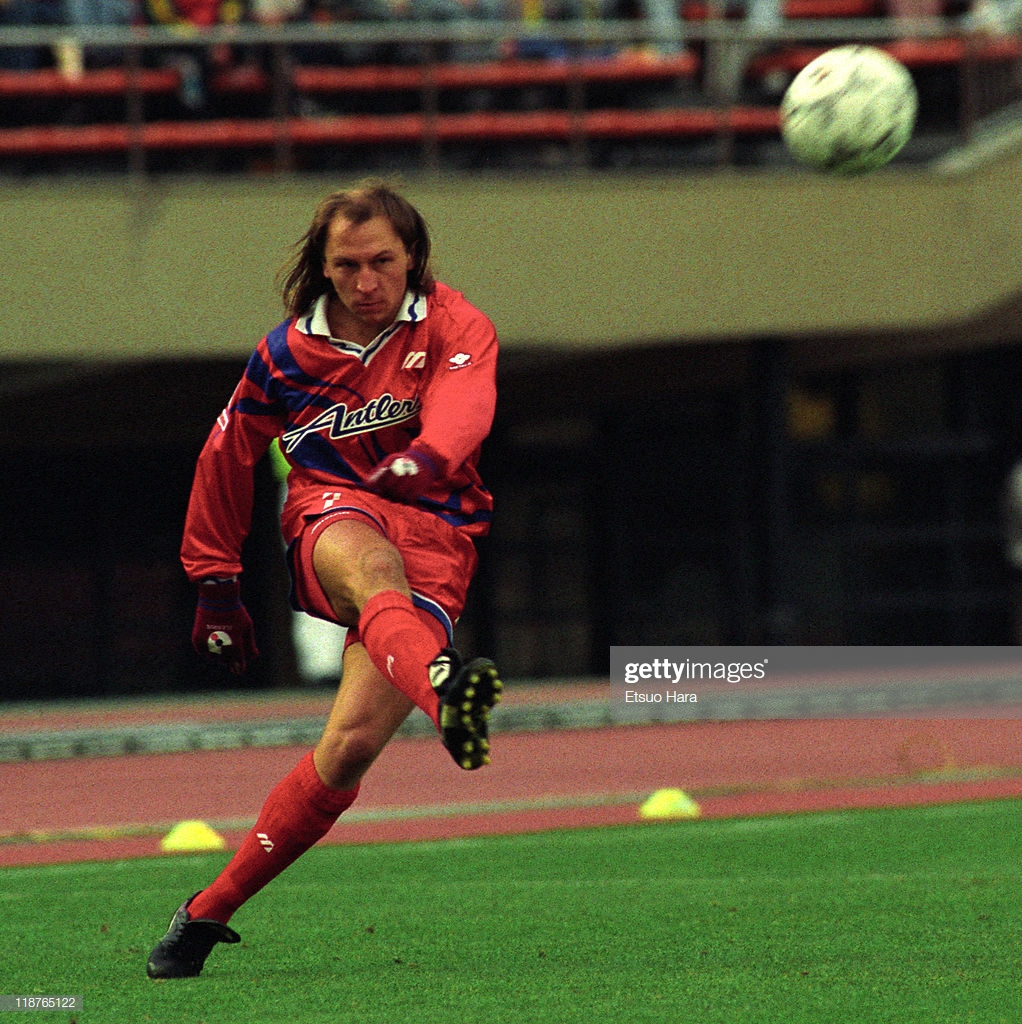 Although I couldn’t find any pictures of it in action, Kazu Miura was still Verdy-based and wore this shirt. As did two players with very different qualities of haircut. The wonderfully-maned Ruy Ramos and the worst-coiffed player in J-League history, Alcindo (who scored 23 goals this year, presumably due to his increased streamlining).