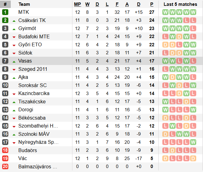Although MTK steam onwards, a few losses for the other top teams has revealed a chink of light for the chasing pack. Vasas are generally good coming from below. Autumn is the time to prove that if they want to leave themselves a chance of promotion going into 2020.