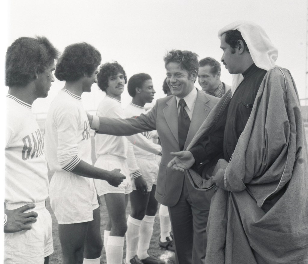 In my continuing exploration of Bahraini football history, I came across a gallery on the excellent BNA Zaman website a few weeks back, titled “Ahli Club vs Swiss team, 1976”. A few things stood out: first, the Swiss team weren’t named and had no distinguishing badge on their kit – always annoying. Thankfully, a quick call for help on Swiss Football Twitter sorted that out (thanks all!) – two-time Swiss champions Neuchâtel Xamax were the mystery team.