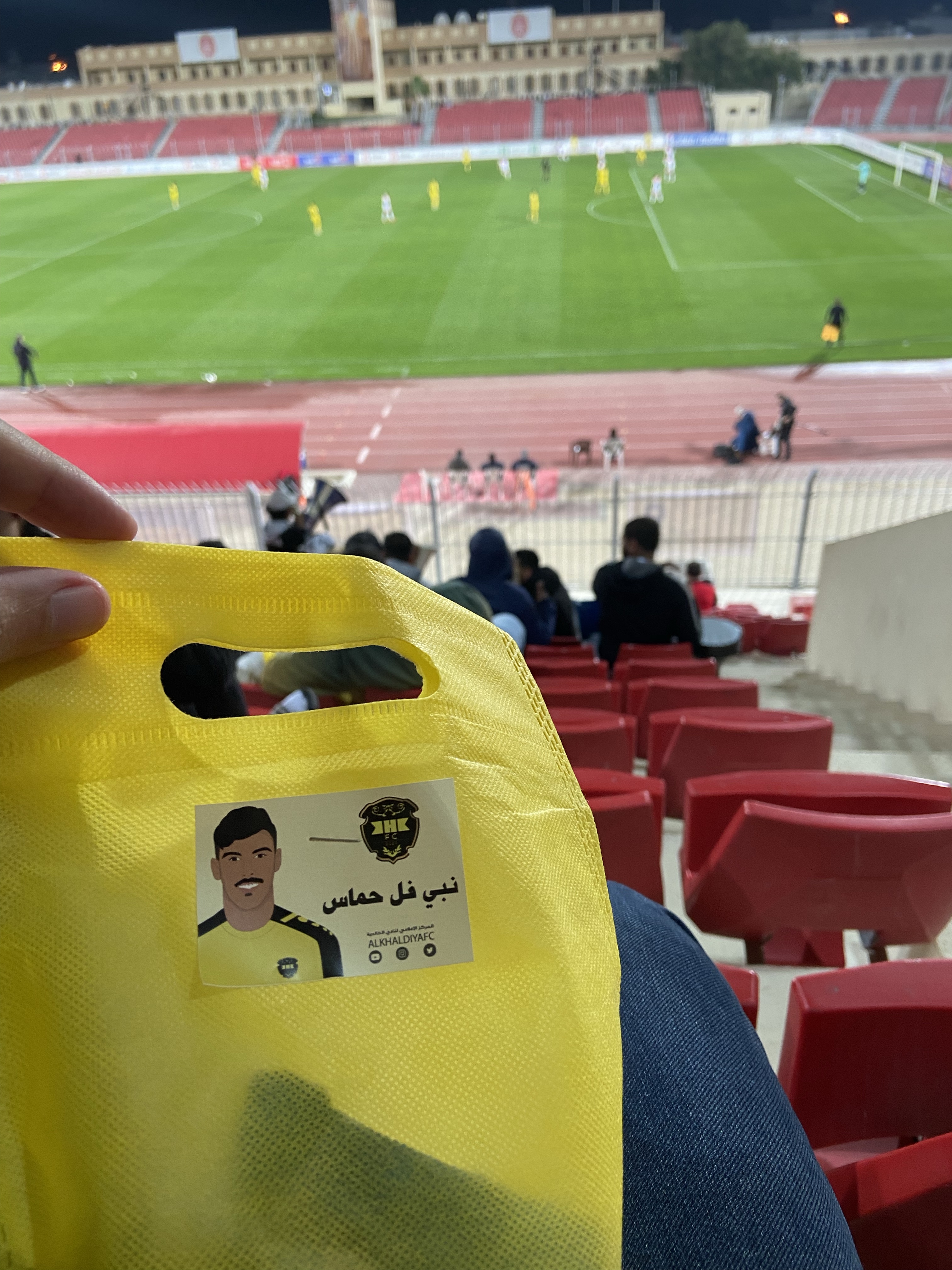 Khalidiya are definitely on a charm offensive. They’re the newest team in Bahrain and playing catch-up in terms of support. Therefore, they’ve decided that party bags are the way forwards and have thoughtfully included some Lotus biscuits within. They also had a raffle which I missed out on winning by two numbers. Their main claim to fame is that they didn’t quite sign Alexander Hleb.