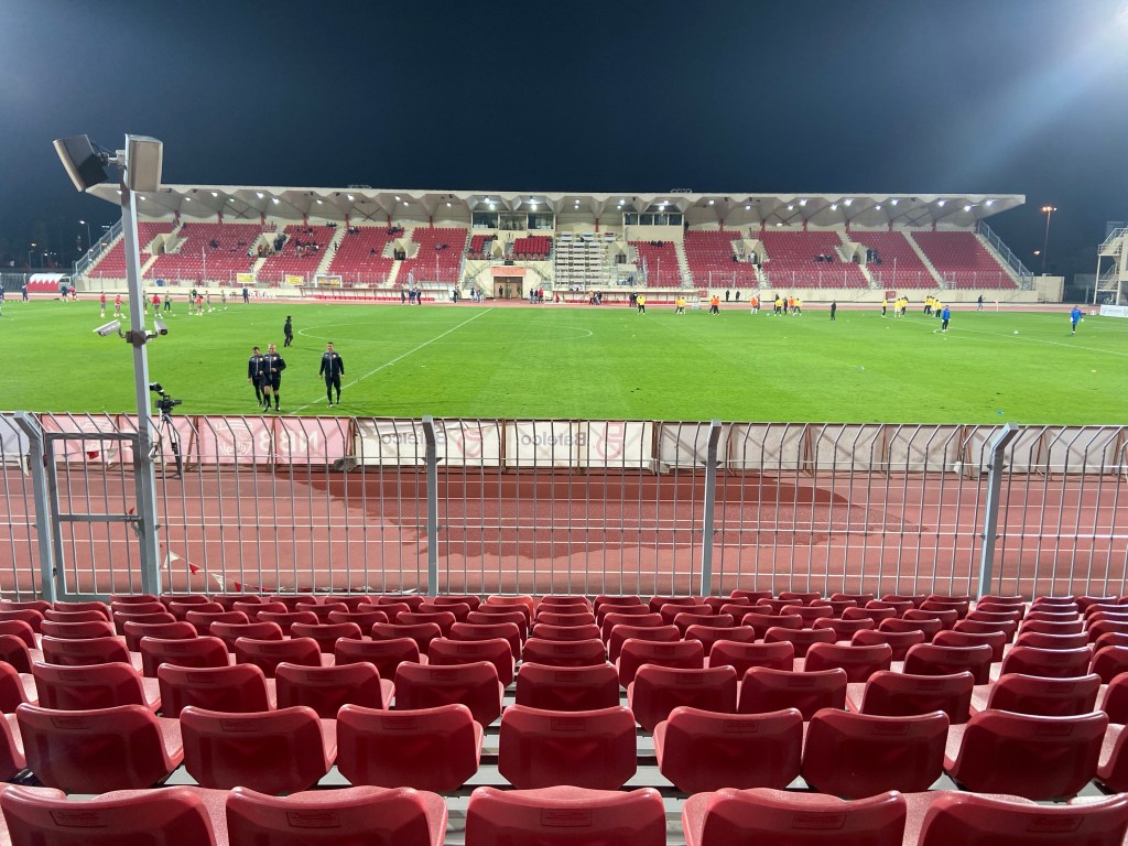 I switch ends for the second match: East Riffa vs. Al-Najma, heading over to the windblown East Stand. I’m one of about 4 people there and – my blood thinned by a hot summer – I’m feeling the rare cold winds a bit too much to hang around for the full 90. I make it to half time (1-1), managing to miss three second half goals, including a 91st minute winner from Riffa.