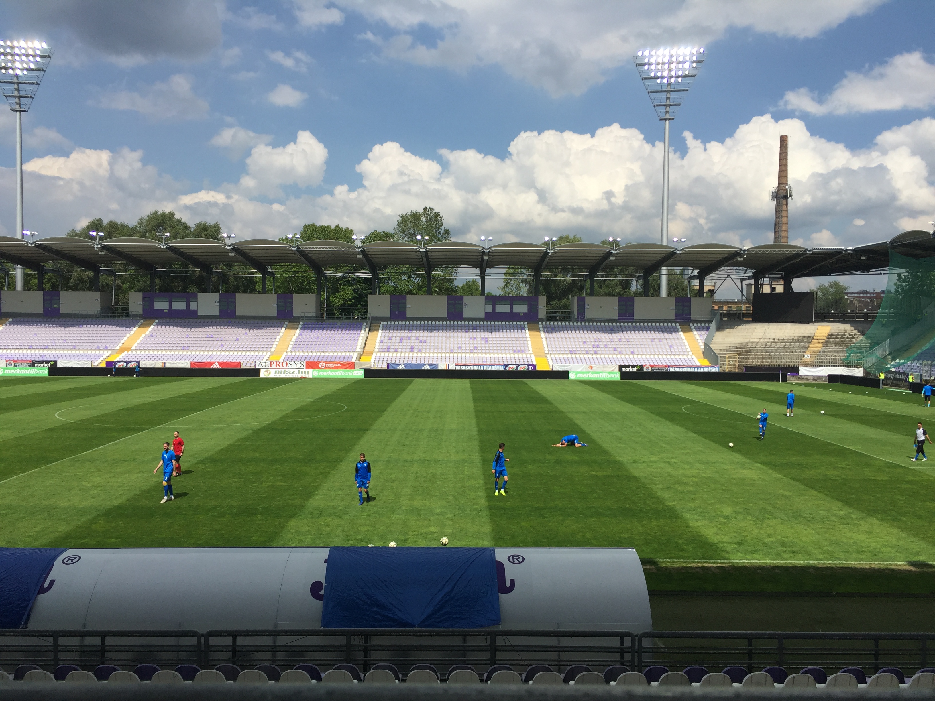 It’s a beautiful day in Ujpest for the final game of the 2018/19 campaign, and it’s also time to say a not-so-fond farewell to the Szusza Ferenc – the ground that Vasas have been borrowing this year – as the team prepares to move back to Angyalföld and the newly-rebuilt Illovszky Rudolf Stadium.